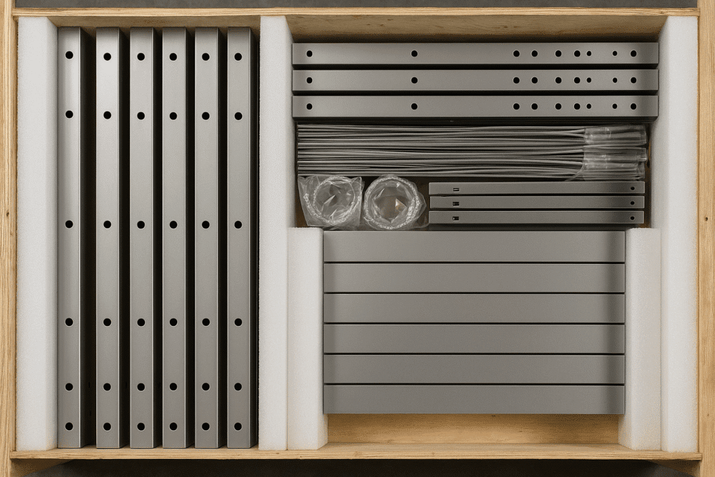 Every project includes a dedicated packaging strategy. With flat-packable metal POS displays, clients often save up to 35% in international freight costs. These flat-pack retail fixtures for export minimize shipping volume while maintaining integrity, using pre-labeled packaging and simplified component kits for quick setup.