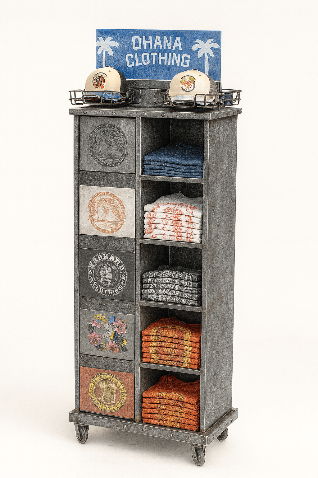 This portable clothing display format offers the modularity, durability, and stock-to-space ratio wholesale programs demand.
