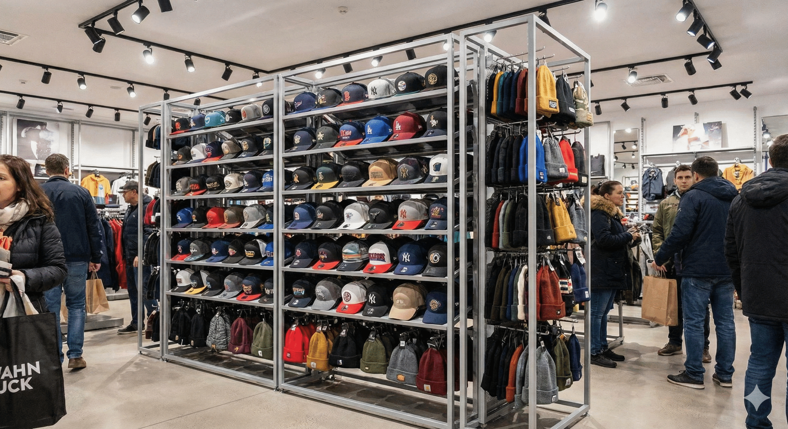 One of the primary challenges in displaying headwear is the sheer volume of SKUs. Flat shelving hides the product. Our 4-sided rotating design solves this by utilizing the store’s “air rights.”