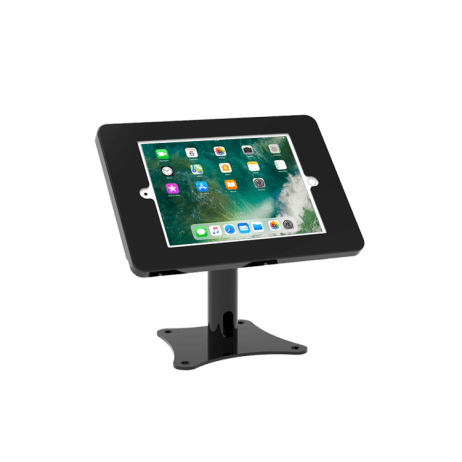 The stand assembles in minutes. The tool-free clamp design enables quick repositioning while soft pads protect surfaces like glass or laminate. Each unit undergoes 10,000 tap-simulation tests to confirm performance in real retail conditions.
