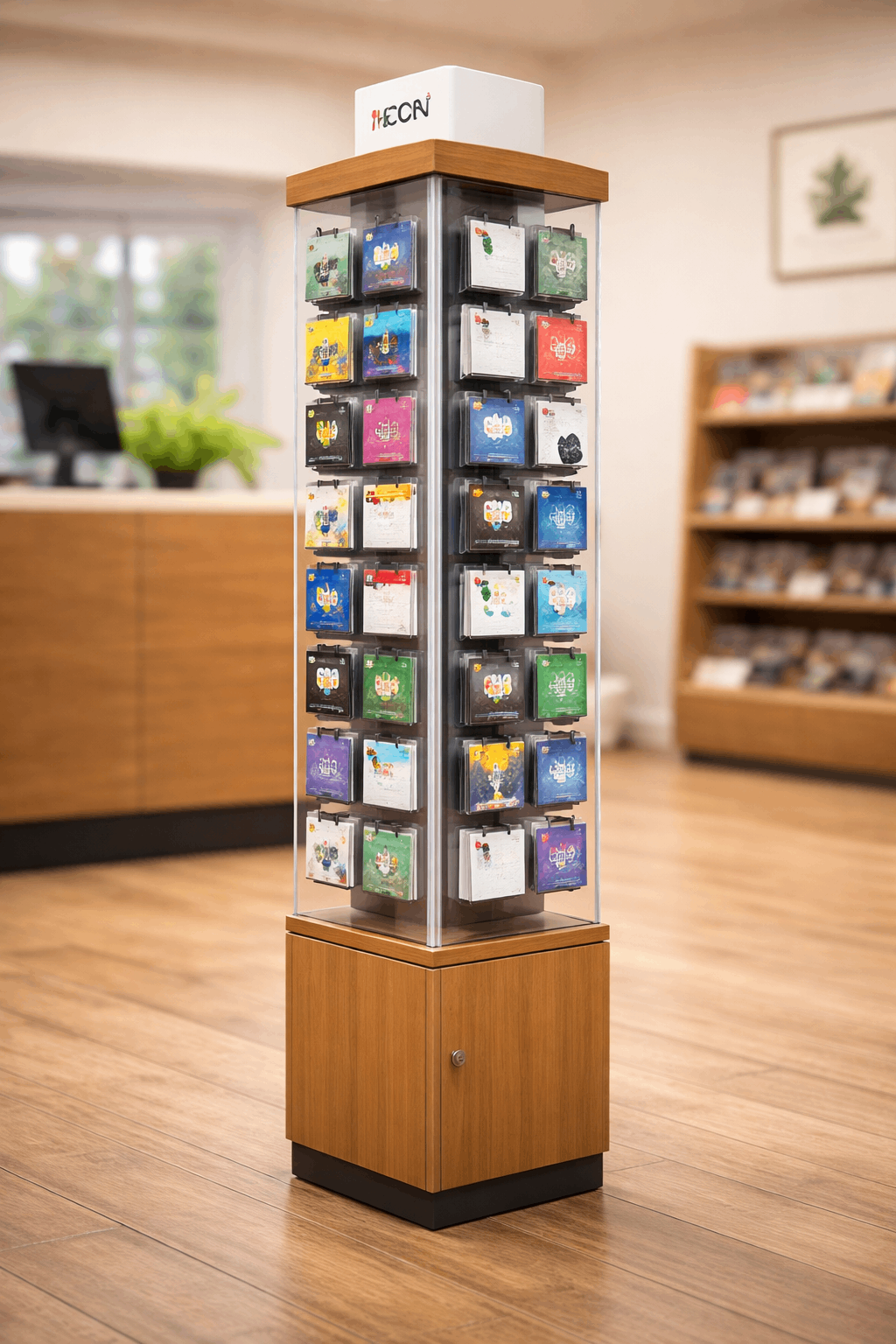 For retailers offering greeting cards display assortments, vertical organization improves visibility and reduces clutter. The rotating structure adapts to diverse store formats without obstructing customer flow.