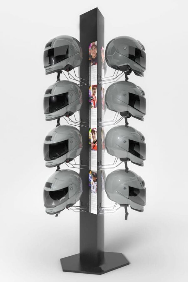 Visual presentation also affects perceived quality. A premium helmet displayed on a flimsy fixture sends the wrong message — which can hurt sell-through and store credibility, especially during multi-location retail rollouts.