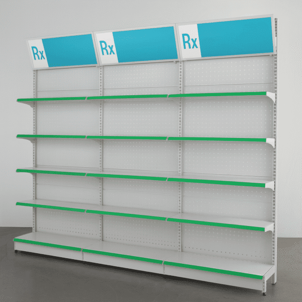 Pharmacy retailers operate under constant pressure to optimize limited space, improve product visibility, and standardize across locations. This 3-group gondola shelving unit provides a practical solution that aligns with all three needs.
