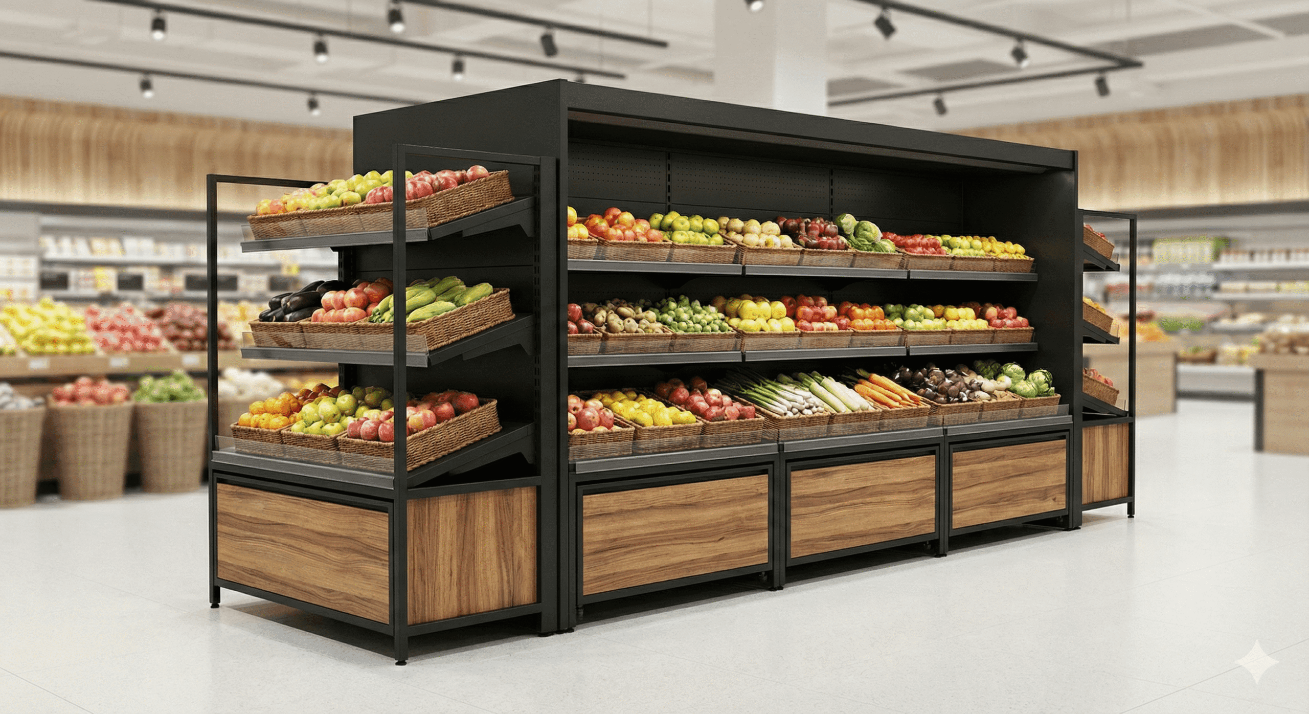 Black Metal Fruit Gondola: High-Margin WholesaleBlack Metal Fruit Gondola: High-Margin Wholesale