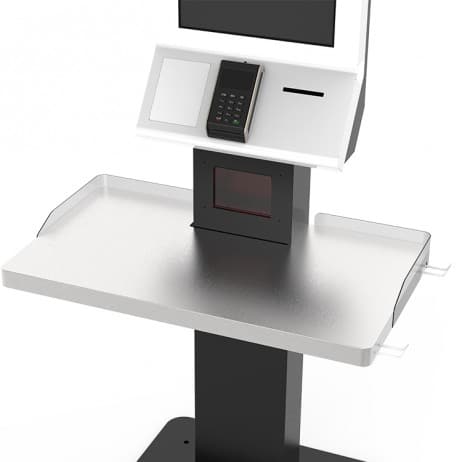 Featuring a 27-inch Full HD PCAP touchscreen, this kiosk enhances visibility, reduces onboarding time, and ensures smooth multilingual operation in high-turnover environments. Its accuracy enables swift self-checkout, especially where product volume and SKU density are high.