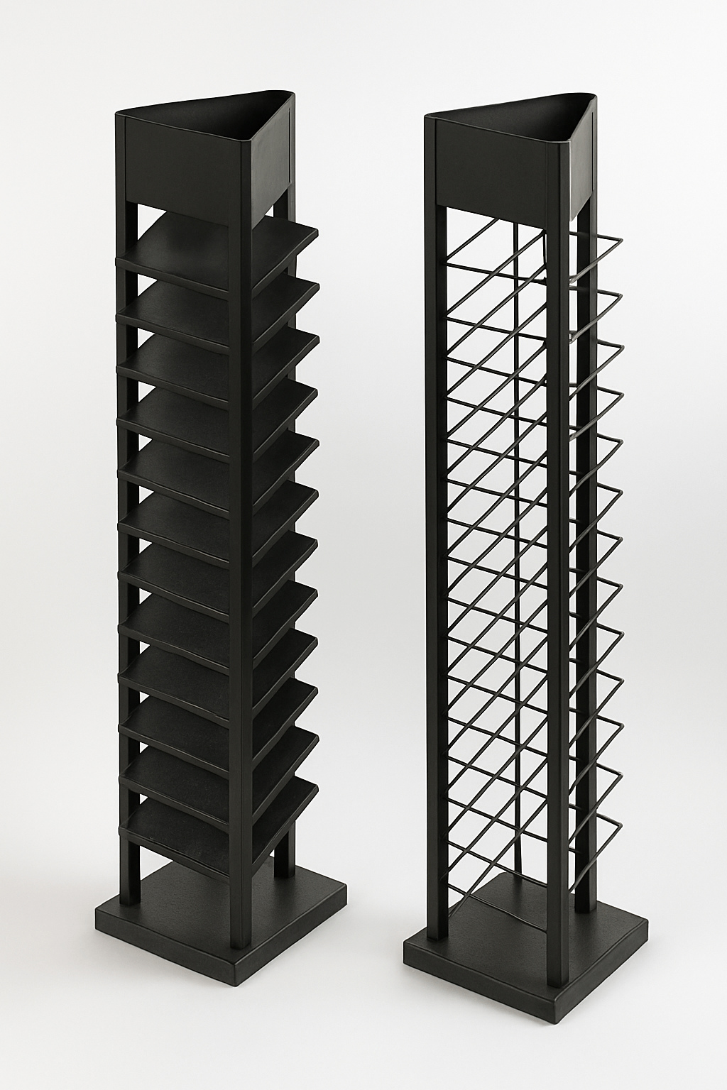 Showroom space is a finite resource. That’s why this rack’s design leverages vertical space through a compact, triangular A-frame structure—known for its low center of gravity and exceptional stability.