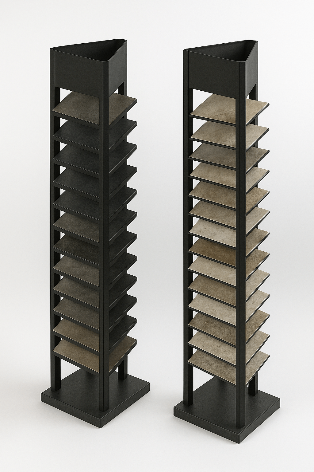 Where aesthetics matter—such as in architecture studios or design centers—these racks provide a clean, modern way to present sample tiles. The compact footprint makes them suitable for private consultations or small-space galleries.