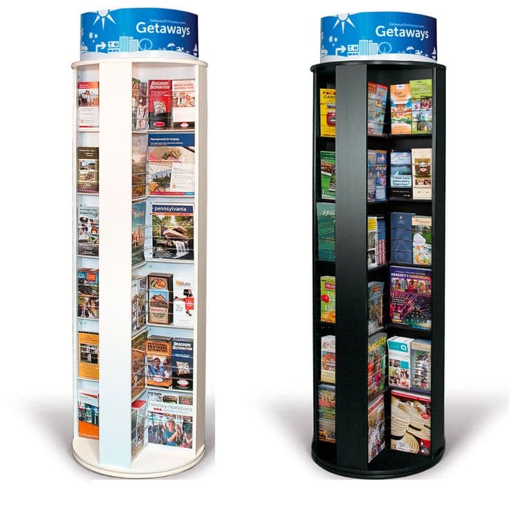 Rotating designs present more covers in less space, which allows stores to showcase a wider variety of SKUs. Children’s books, cookbooks, or collectibles gain better visibility. Furthermore, signage brackets, shelf guards, and locking wheels help elevate visual impact.