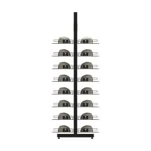 This double-column layout features staggered wireframe baskets to securely hold caps and hats on both sides of the central steel column. Each level is evenly spaced for optimal visibility while allowing quick customer access.
