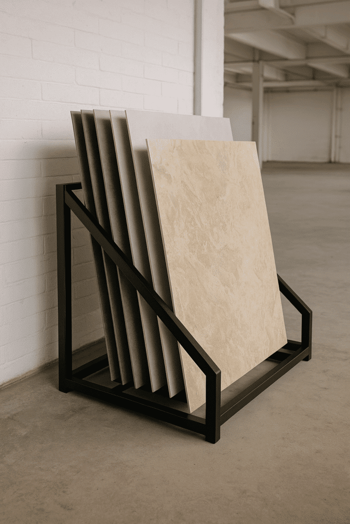 That’s 1.8 tons. This reinforces why structural integrity must come first. The right display isn’t just about style—it’s about safety and long-term durability. This is where a heavy-duty tile rack becomes indispensable in preventing structural failure and ensuring showroom safety.